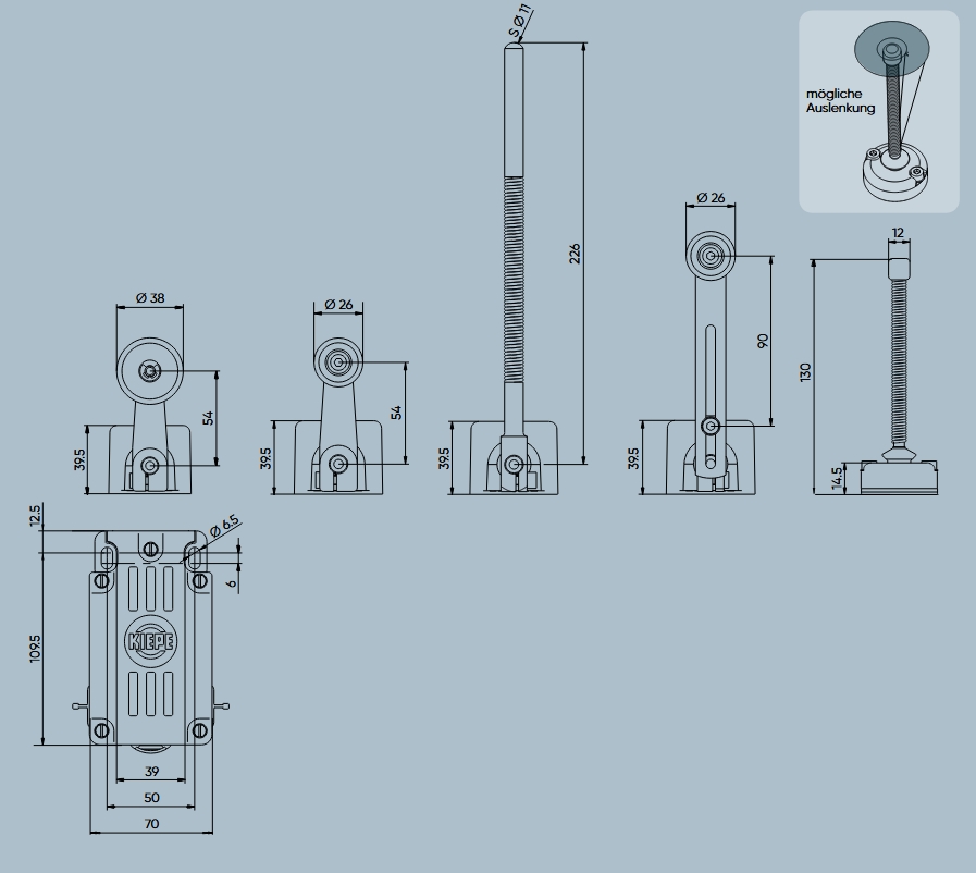 VG (xxx/4) mit Taumelstab Der Positionsschalter VG xxx/4 mit Taumelstab wird mit 2 M6 Schrauben auf der Unterkonsturktion befestigt.